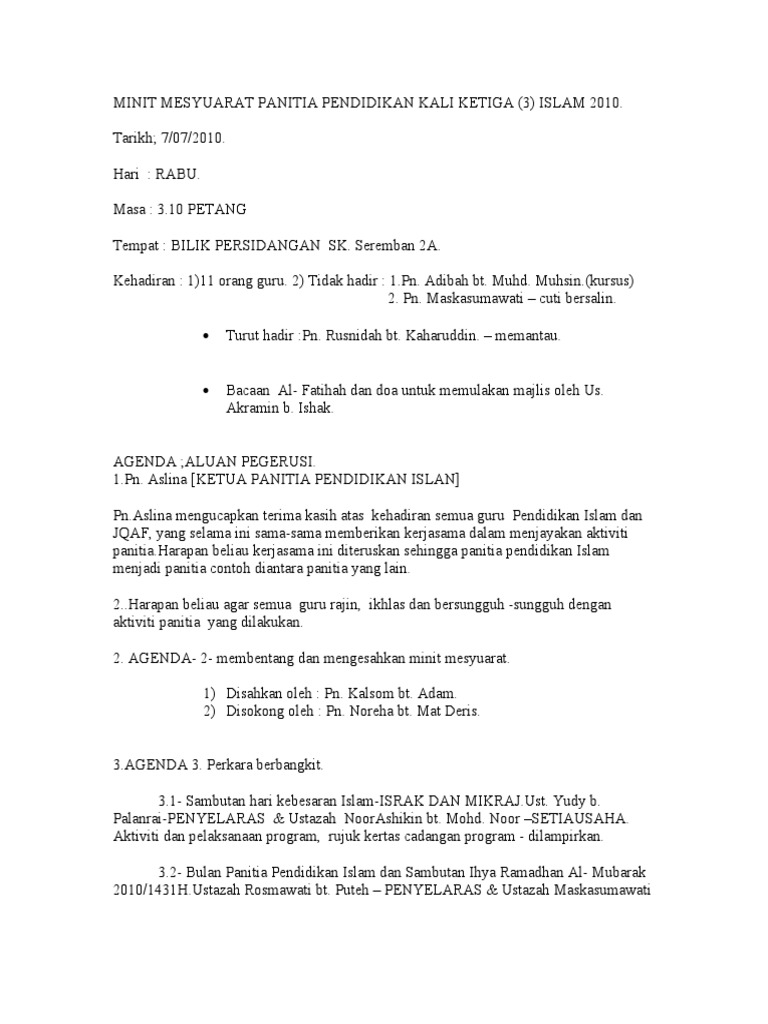 Text of minit mesyuarat panitia matematik. 28 disember 2012 masa : Minit mesyuarat panitia pendidikan seni visual kali minit curai mesyuarat panitia bahasa melayu ppd gombak. 23 januari 2011 hari : Minit mesyarat panitia ekonomi bil 1/3 tahun 2011 smk serian tarikh :